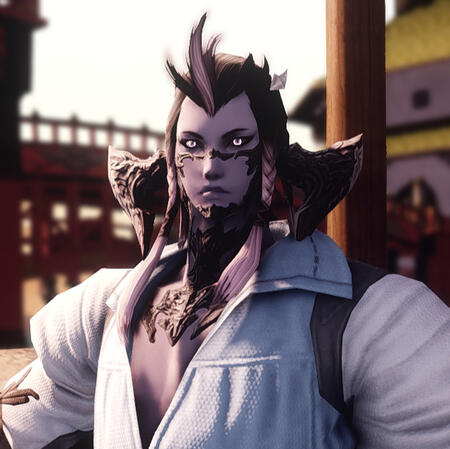 Qara Dazkar was born into the Dazkar tribe. She was expected to a be a great hunter and archer, as was custom, and there were whispers that she was born under an auspicious omen, one that often heralded the next matriarch. From the first time a bow was thrust into her hands, the young au'ra girl wanted nothing to do with it. She had no patience for tracking and hunting, and her arrows were more likely to find themselves embedded in a tree than a beastkin. Qara never warmed up to horses and still refuses to ride one to this day.Childhood on the Steppe for Qara was spent hiding from her responsibilities, being chided by her parents, and running off to secluded areas of the Steppe only to be dragged back to the yurts by her childhood friend, Esugenn. While hiding out, she loved taking over Esugenn's chore of chopping wood. Unlike the bow, the axe felt good in her hand, right. At each Nadaam she watched the more aggressive tribes with longing, especially the Dotharl.The feeling that she was born into the wrong tribe, the wrong destiny, grew as she did. At 15 she met a traveller while accompanying Esugenn on an errand in Reunion. It was this chance encounter that decided it: she would leave her tribe, her family, her home, to become an adventurer and forge a new destiny for herself.Upon leaving the tribe, Qara began her life as an adventurer with a new name, now introducing herself as Qara "Daznik" -- she wished neither to falsely claim another tribe or to be associated with one that felt fundamentally wrong to her.