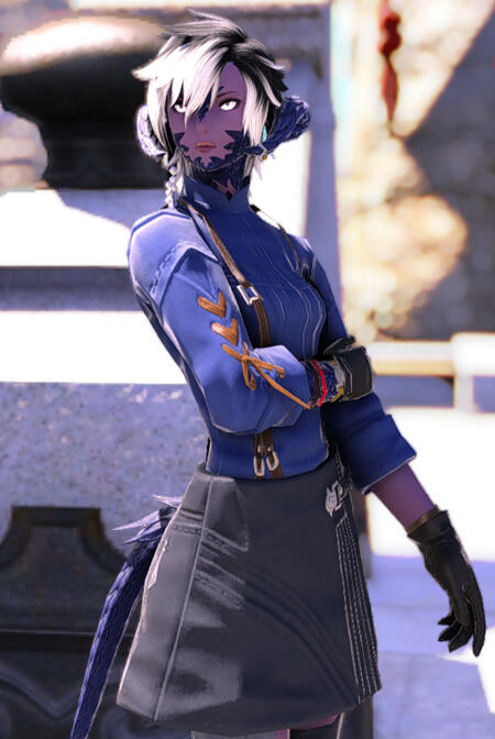 Qara Dazkar was born into the Dazkar tribe. She was expected to a be a great hunter and archer, as was custom, and there were whispers that she was born under an auspicious omen, one that often heralded the next matriarch. From the first time a bow was thrust into her hands, the young au'ra girl wanted nothing to do with it. She had no patience for tracking and hunting, and her arrows were more likely to find themselves embedded in a tree than a beastkin. Qara never warmed up to horses and still refuses to ride one to this day.Childhood on the Steppe for Qara was spent hiding from her responsibilities, being chided by her parents, and running off to secluded areas of the Steppe only to be dragged back to the yurts by her childhood friend, Esugenn. While hiding out, she loved taking over Esugenn's chore of chopping wood. Unlike the bow, the axe felt good in her hand, right. At each Nadaam she watched the more aggressive tribes with longing, especially the Dotharl.The feeling that she was born into the wrong tribe, the wrong destiny, grew as she did. At 15 she met a traveller while accompanying Esugenn on an errand in Reunion. It was this chance encounter that decided it: she would leave her tribe, her family, her home, to become an adventurer and forge a new destiny for herself.Upon leaving the tribe, Qara began her life as an adventurer with a new name, now introducing herself as Qara "Daznik" -- she wished neither to falsely claim another tribe or to be associated with one that felt fundamentally wrong to her.